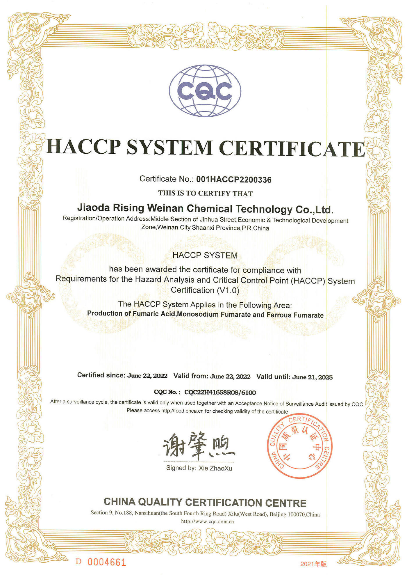 公司通过了ISO9001:2015、HACCP认证和FSSC22000等质量安全管理体系认证。